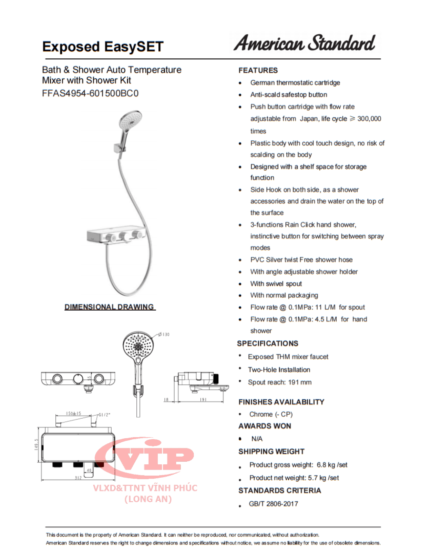 Vòi tắm cảm biến nhiệt EasySET Exposed WF-4954
