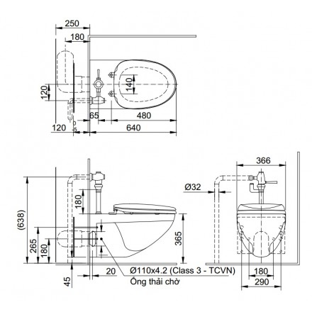 - Đã bao gồm van xả, gioăng nối ống xả và phụ kiện treo tường