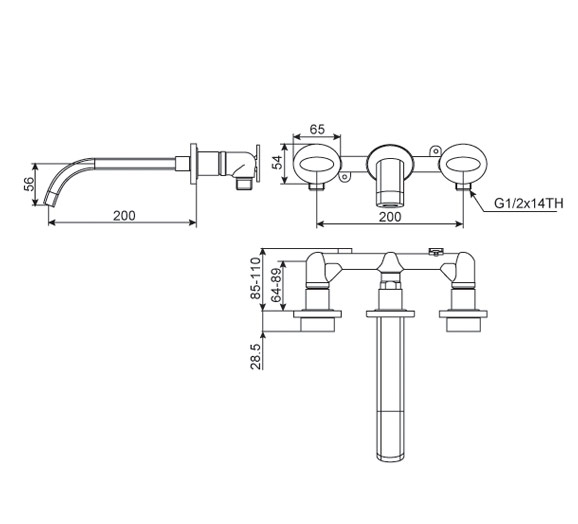 | Kiểu | Vòi lavabo gắn tường 02 tay vặn |